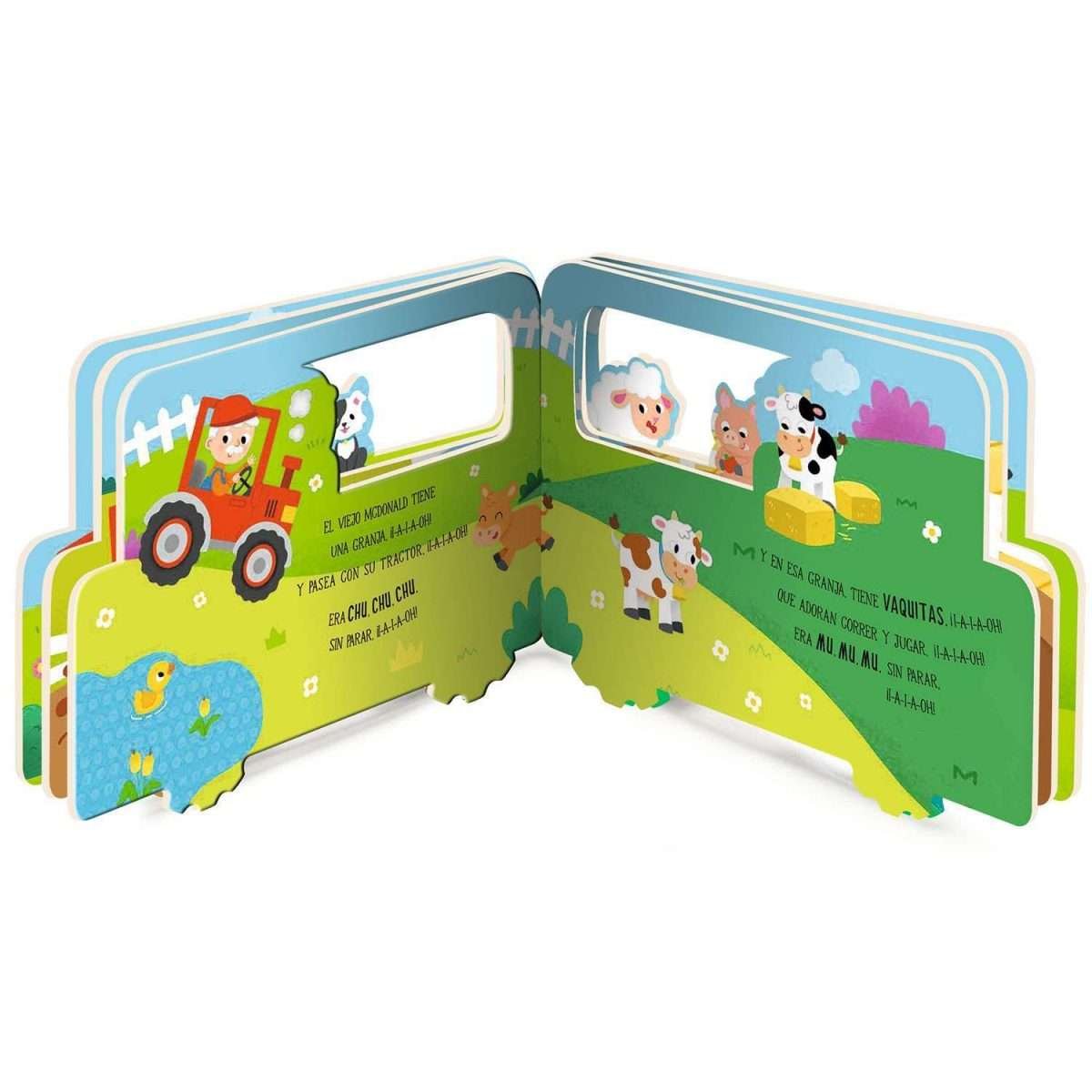 ¡Vamos a acompañar al viejo McDonald y dar un paseo con sus amigos en el tractor de la Granja! A los niños les encantará leer y jugar una y otra vez este simpático cuentos troquelado en forma de tractor. ¡Hazlo rodar!